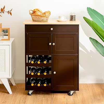 Buy rolling kitchen cart, kitchen storage island with wine rack&shelf&drawer, wood kitchen counter cabinet on wheels, kitchen prep table cart, microwave carts for kitchen dining room, a1516 at walmart.com