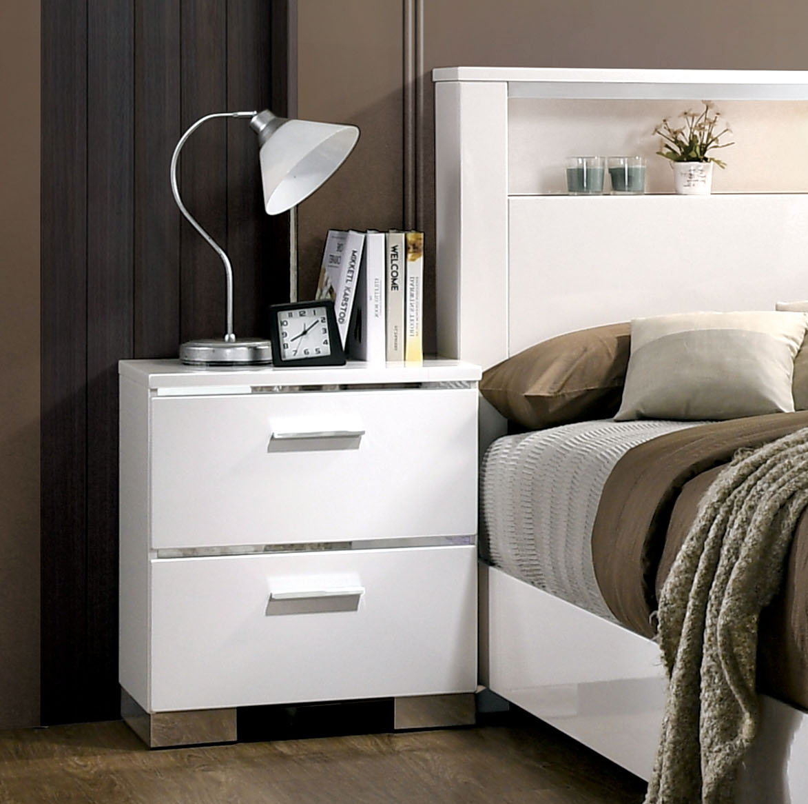 D) by 222 fifth $ 299 99. If you have any questions about your purchase or any other product for sale, our customer service. 5.1 inches high x 18.25 inches wide x 12.75 inches deep. This 2 drawer nightstand is a fresh take on modern italian design, with high gloss white finishing and chrome hardware and accents. Naima ii nightstand in white high gloss with 3 drawers, made of acrylic, is suitable for your bedroom living room. Tvilum space 3 drawer chest, oak structure, white $133.96. Tvilum 5 drawer chest, white wood grain $215.09. Features two spacious drawers with felt lining, metal full extension drawer glides and pin construction front and back. Contrast grey drawer pulls and feet. 5 out of 5 stars with 1 ratings. The simple, straight lines of the nightstand are punctuated by a chrome handle on the bottom drawer and accentuated by a layering effect on the drawer fronts. Felicity collection nightstand finished in glossy white and polished chrome hardware. With space for a lamp, alarm clock, best.